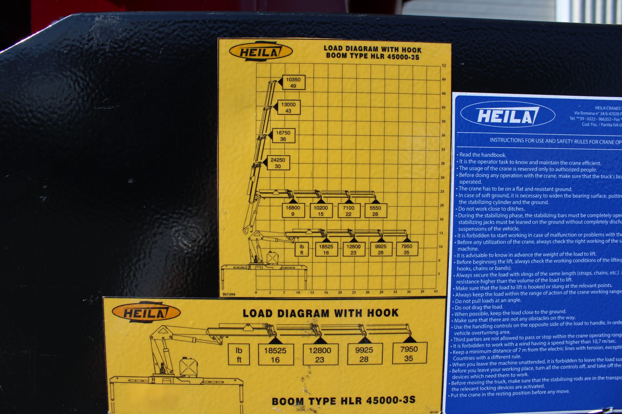 New – BIK “Heavy Lift” Series HL45T – by Heila: with hyd out & down stabilizers, 3-hydraulic extensions to 36’ of side reach.