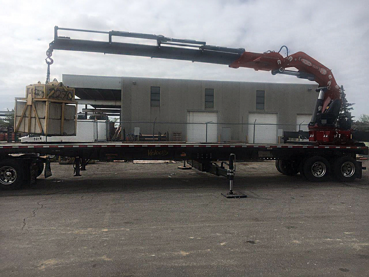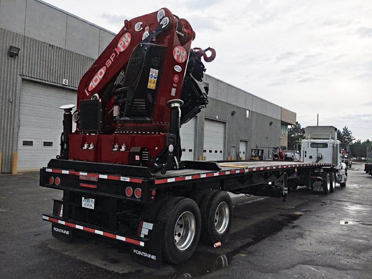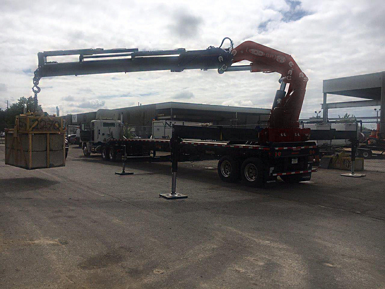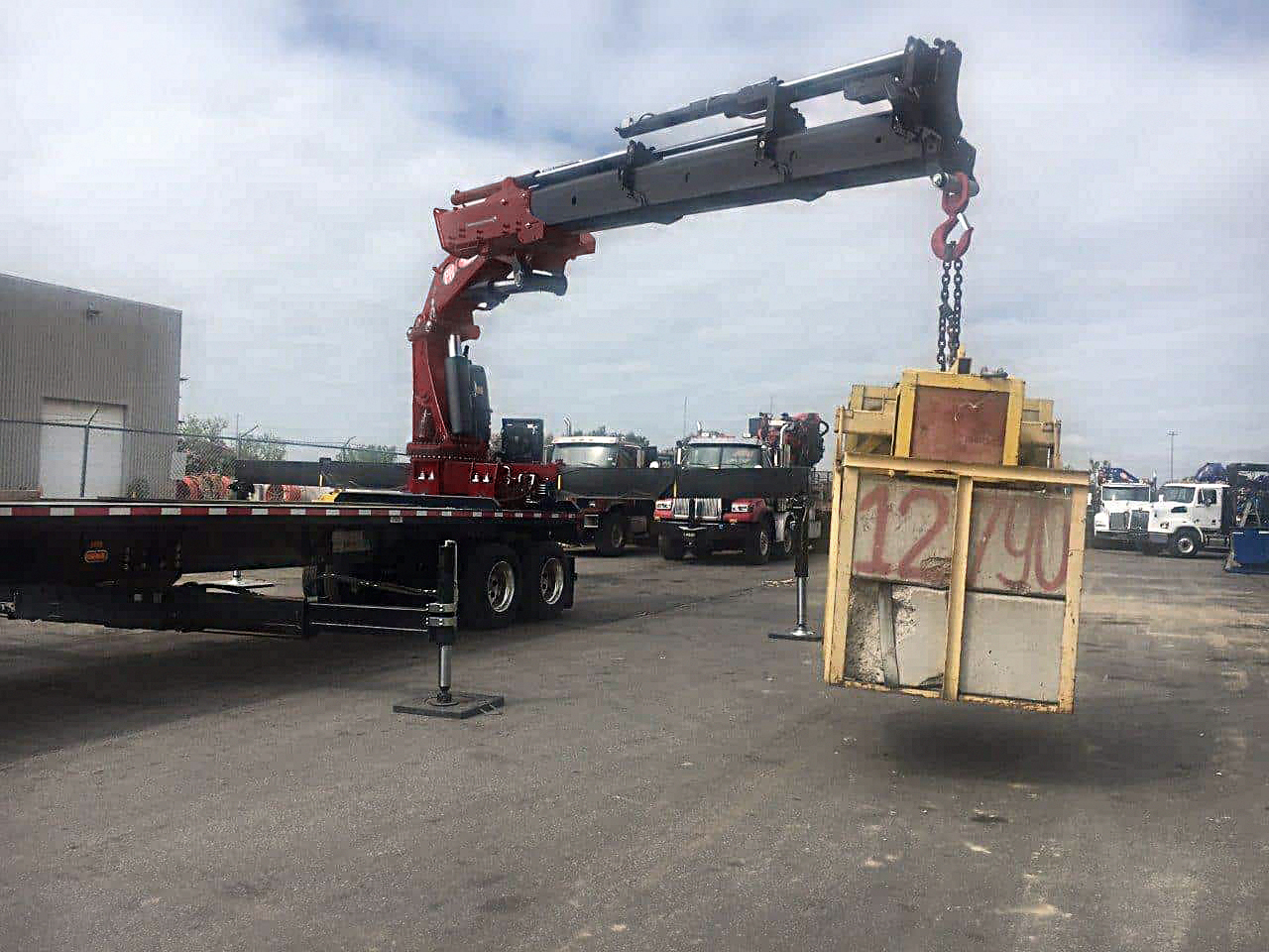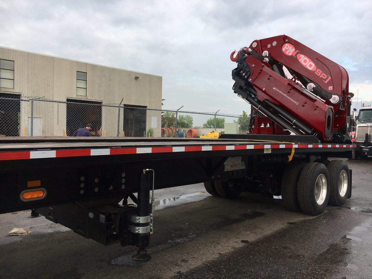 NEW PM 100024 (100 TON/M) KNUCKLE BOOM REAR-MTD ON NEW 42′ T/A TRAILER – IDEAL PRECAST UNLOADER