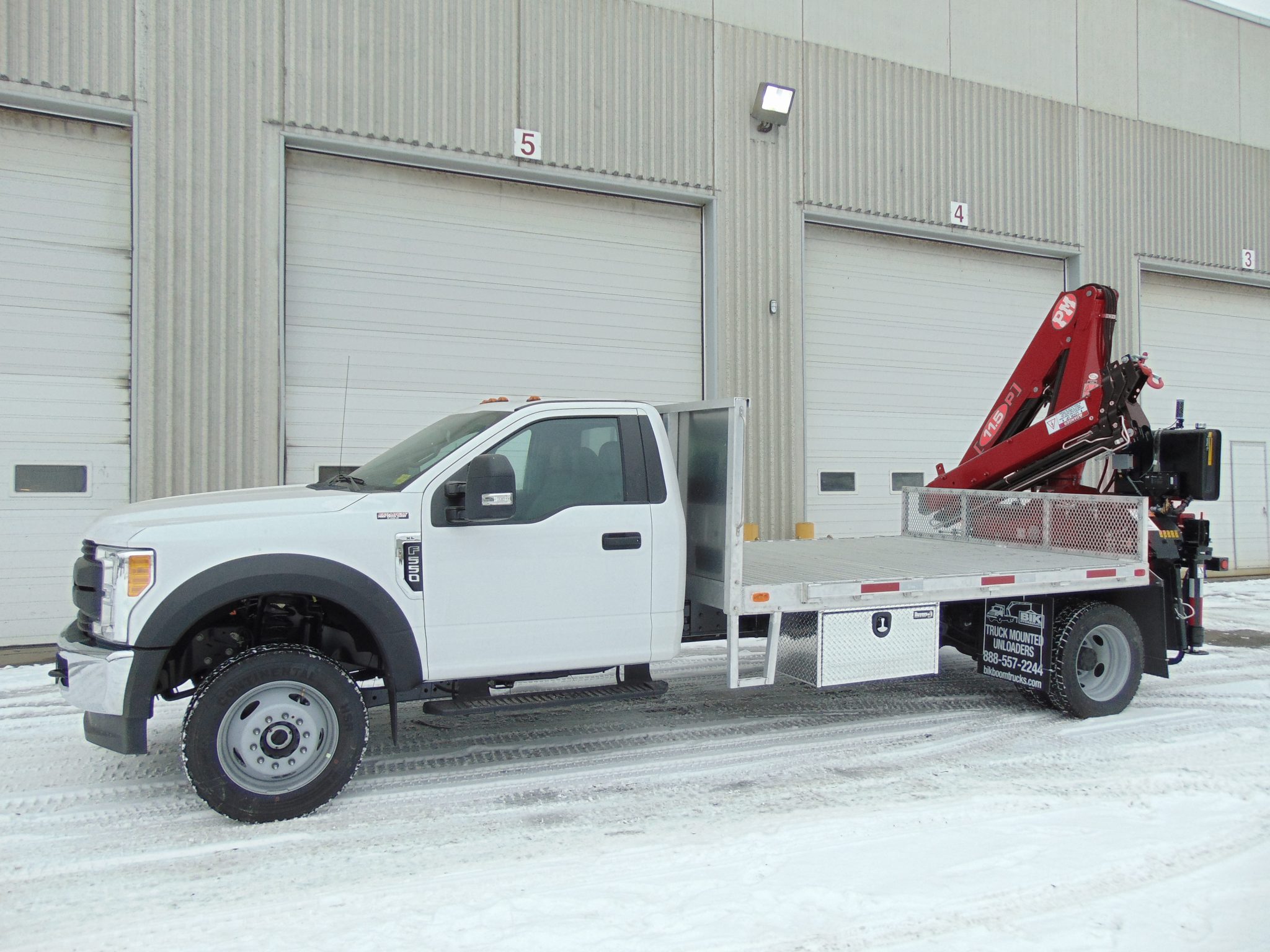 NEW PM 11523 KNUCKLE BOOM REAR MTD ON NEW FORD F550 WITH 10′ 6″ ALUM DECK & RADIO REMOTE